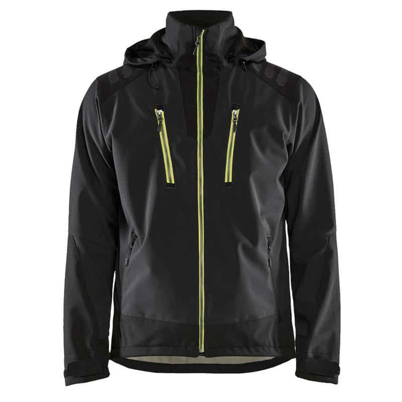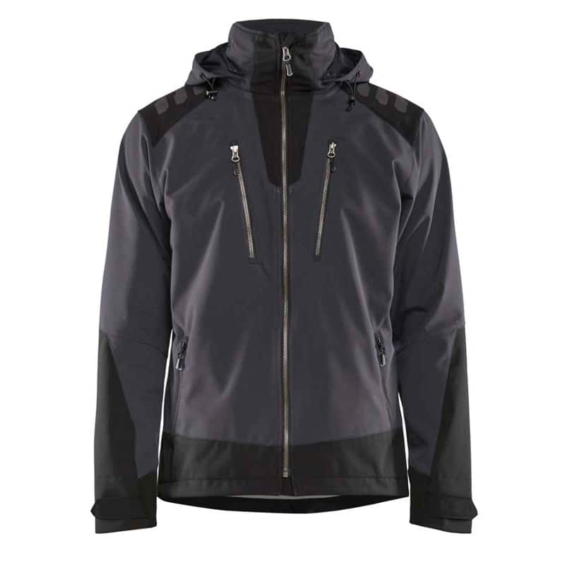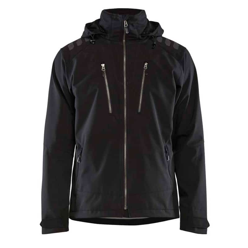 Flexible und vielseitige Softshell Jacke mit verstellbarer Kapuze. Dunkle Reflektoren an Schultern und Rücken sowie robuste Reißverschlüsse. Die Jacke wurde entwickelt, um maximale Bewegungsfreiheit zu bieten und sie besteht aus einem dehnbaren, wind- und wasserdichten Stoff.