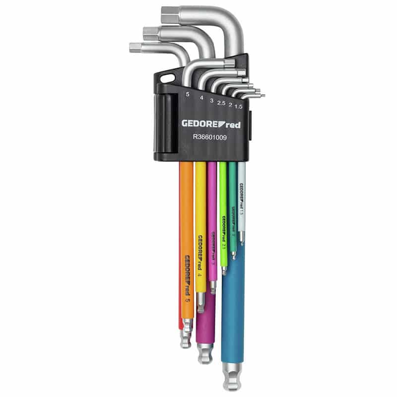 - Farbcodierung mit Kunststoffbeschichtung für schnelleres Auffinden des passenden Winkelschlüssels